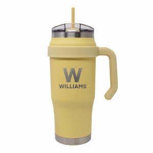 30 oz. Articware Tumbler with straw. W & Williams College. Gold