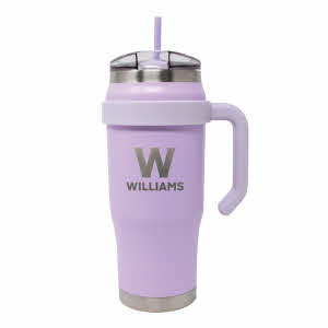 30 oz. Articware Tumbler with straw. W & Williams College. Purple