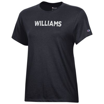 Champion® women's t-shirt with white Williams on the front. Black.
