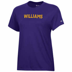 Champion® women's t-shirt with gold Williams on the front. Purple.