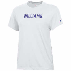 Women's T-shirt from Champion with arched Williams on the front. White. Was $24.99