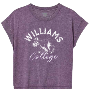 Ladies Vintage Wash Tee with WILLIAMS over the cow and script College on the front. Plum.