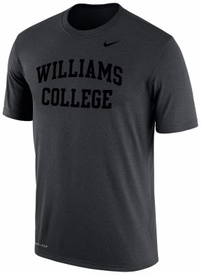 Nike® men's Dri-Fit T-shirt with tonal WILLIAMS COLLEGE on the front. Anthracite. 57/43 cotton/poly.