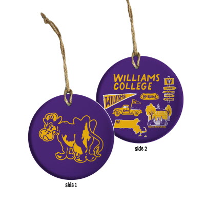 Ceramic ornament featuring the cow on one side and Williams impressions on the other. Purple
