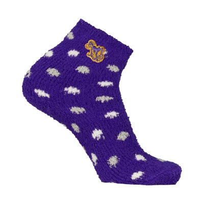 Polkadot Cozy Socks with cow patch. Purple