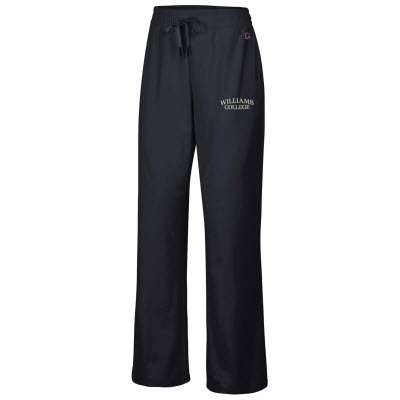 Champion® Women's Sueded Wide Leg Pants with slit pockets, and Williams College in ivory on the left leg. Very soft. Black.