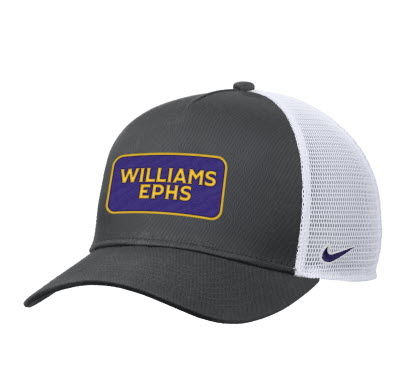 Nike® Mesh Back Hat with purple & gold Williams Ephs patch on the front and Nike® swoosh on the side. Black.