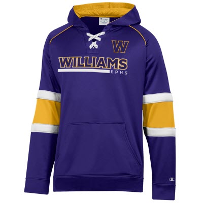 Men's Stadium up Hooded sweatshirt from Champion® with a W on the left chest and WILLIAMS EPHS on the front . Purple.