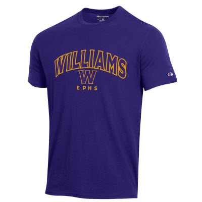 Champion® Stadium Collection T-shirt with tackeltwill arched WILLIAMS over emb W and EPHS on the front. Purple 100% cotton.