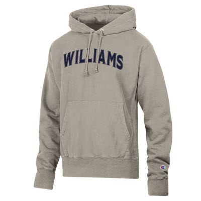Extra-heavyweight Reverse Weave hooded sweatshirt from Champion® with muff pocket, Williams on the left chest and large W on the back. Silver gray.