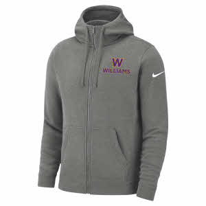 Nike® men's full-zip hooded sweatshirt with W & WILLIAMS design on the left chest. Dark Heather.