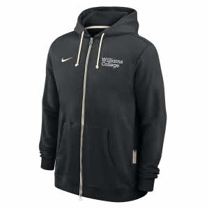 Nike® men's Dri-Fit Sideline full-zip hooded sweatshirt with WILLIAMS College on the left chest. Black.